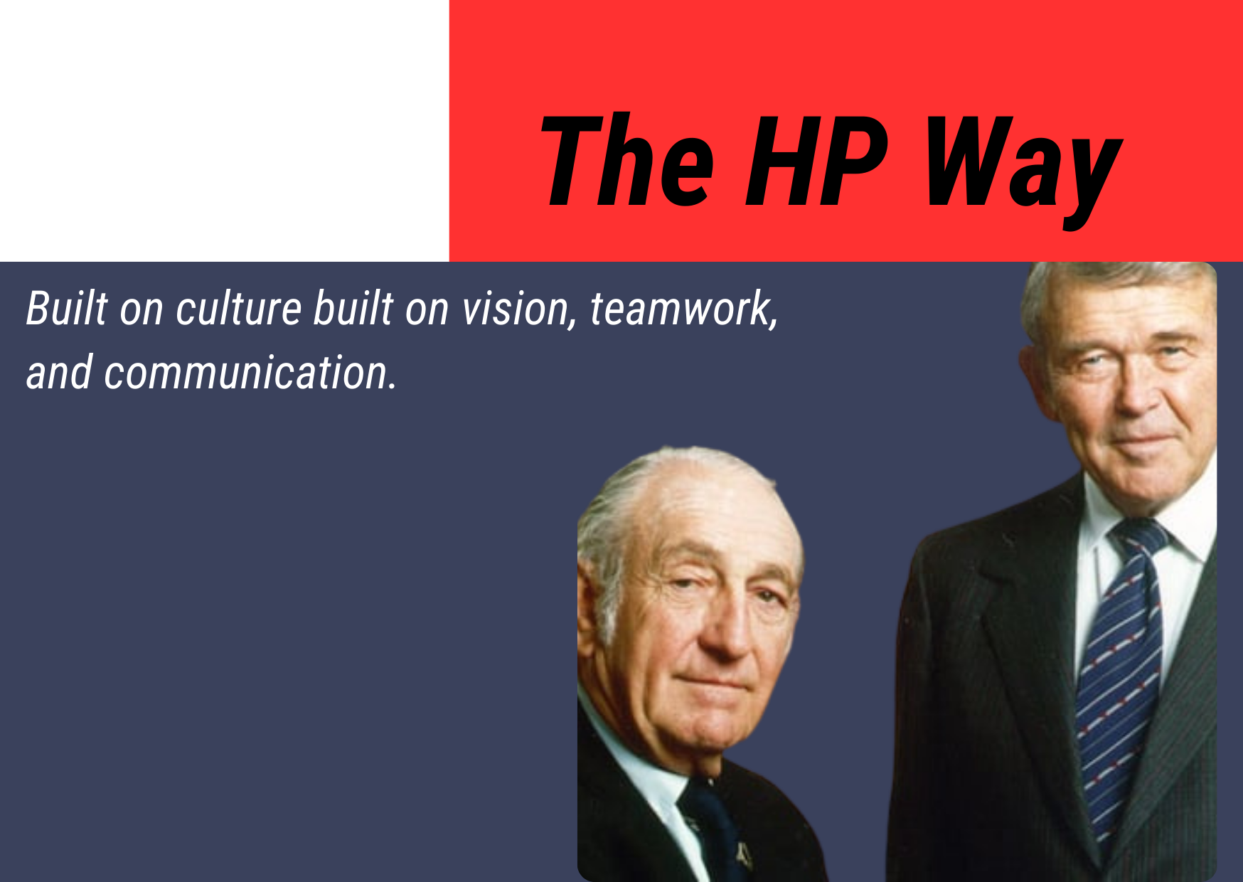Hewlett and Packard believed great companies must stand for something bigger than profit. They created a clear vision that focused on innovation, long-term thinking, and meaningful contributions to society. This vision gave employees a sense of purpose and direction.